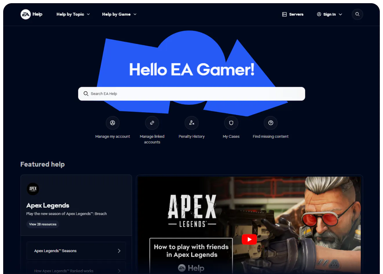 Serving millions of players across dozens of titles requires more than a generic FAQ. EA organizes its help center around what players actually care about: the specific game and the platform they are playing on. That decision alone removes friction. Each game has its own hub, where issues such as connectivity, purchases, missing content and account recovery are addressed directly.