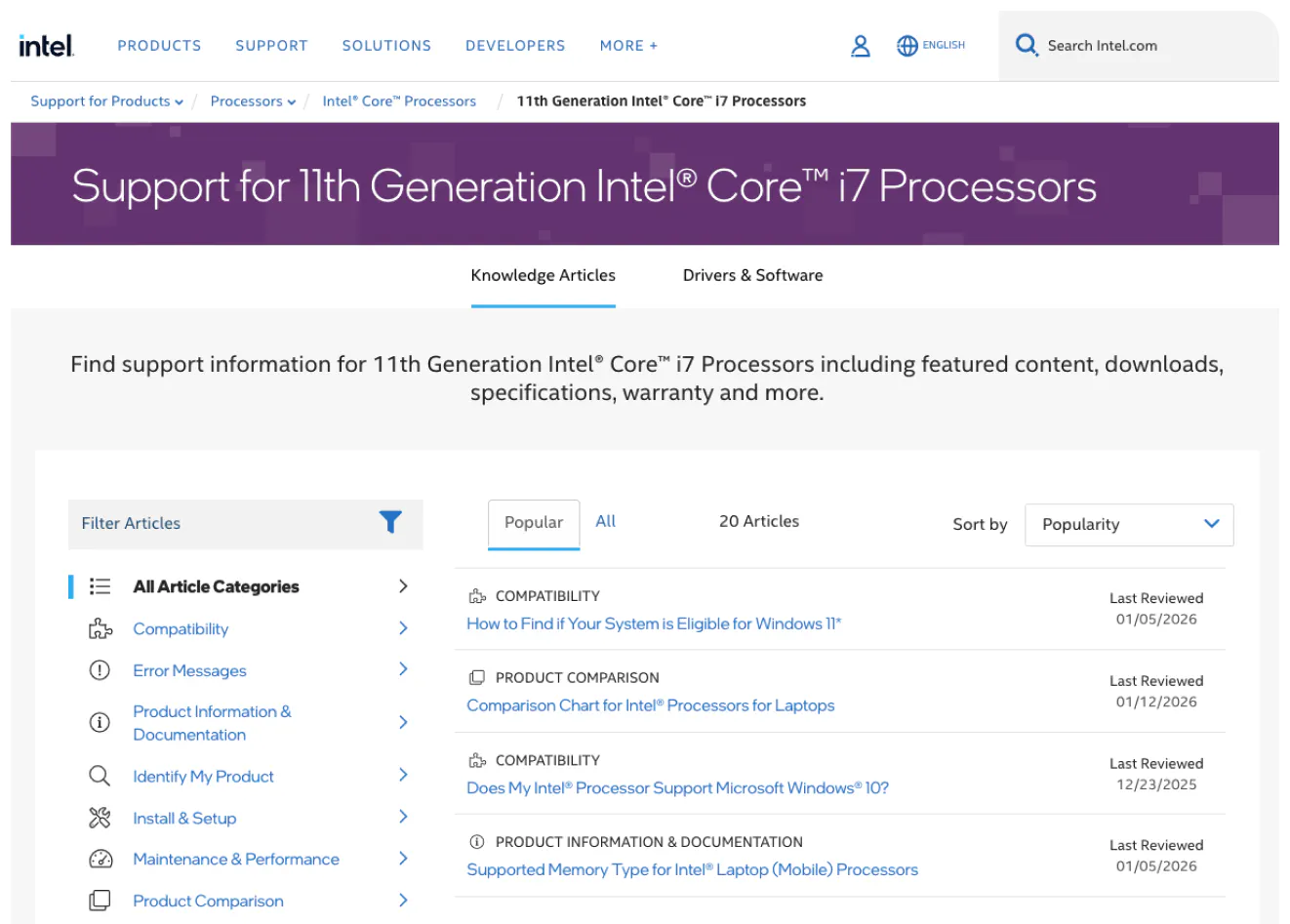 The documentation is organized by product type and contains a trove of specs, data sheets, manuals and troubleshooting guides for the entire ecosystem of Intel products. Articles are short and to the point, focusing on technical information and specific resolutions. Brevity doesn’t mean they lack in detail: they just focus on what’s essential for the particular issue.