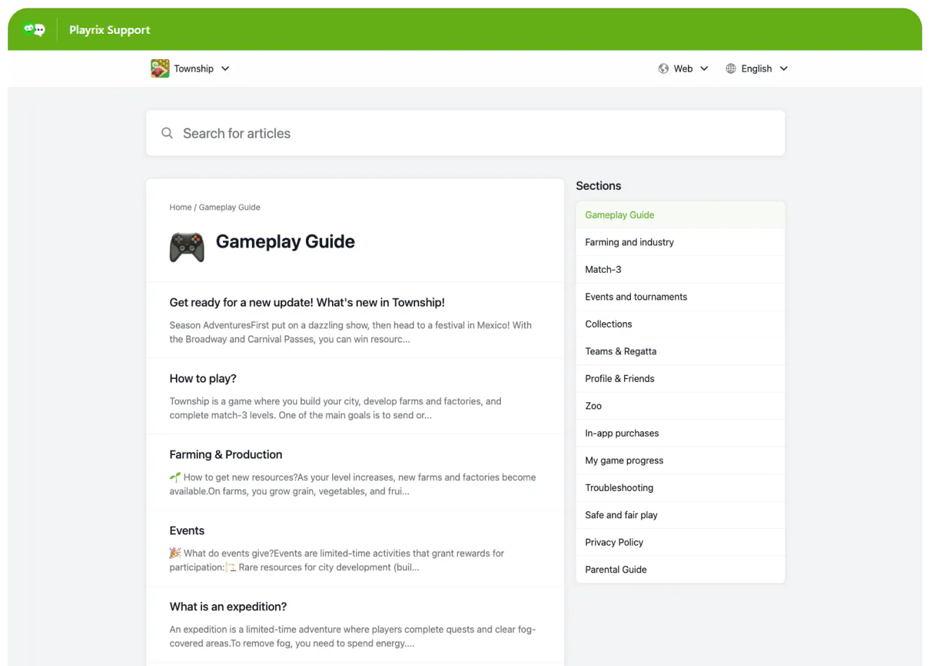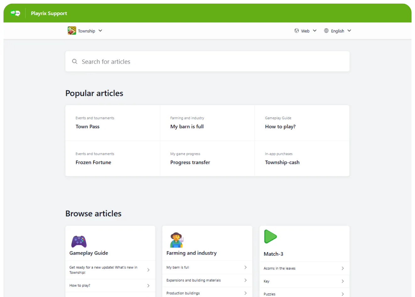 Playrix operates multiple popular mobile games, each with its own mechanics, currencies and progression systems. Its help center is organized first by game, which immediately narrows context and reduces confusion. Once inside a game hub, users can navigate issues such as lost progress, in-app purchases, level mechanics, connectivity and account synchronization.