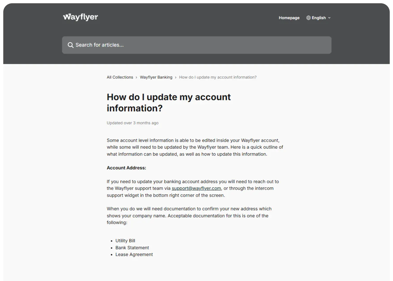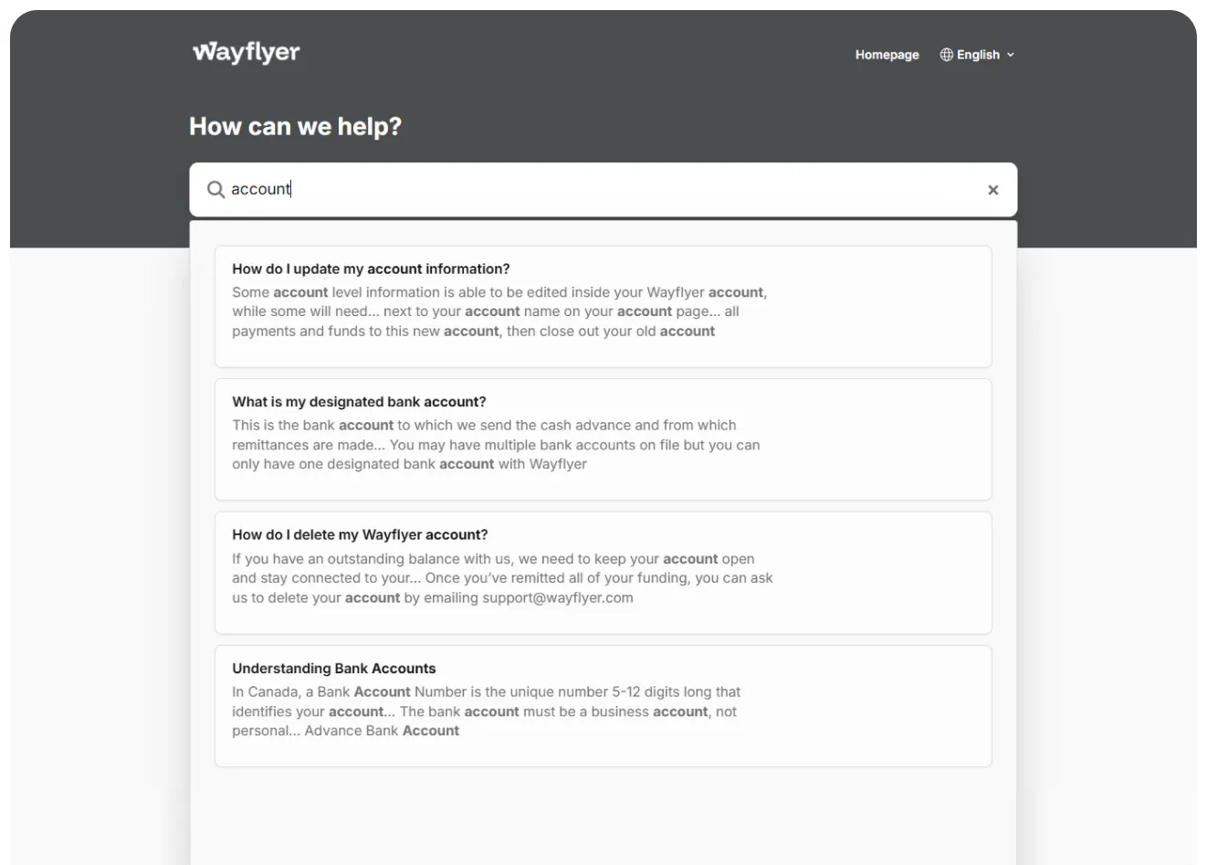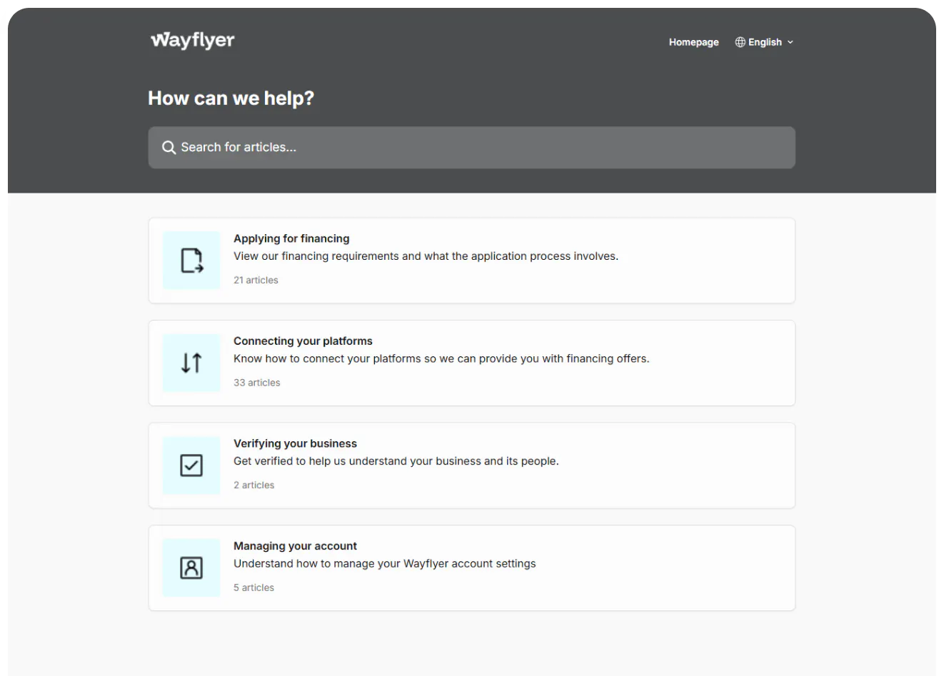 Wayflyer provides a refreshingly simple take on a help center for banking.