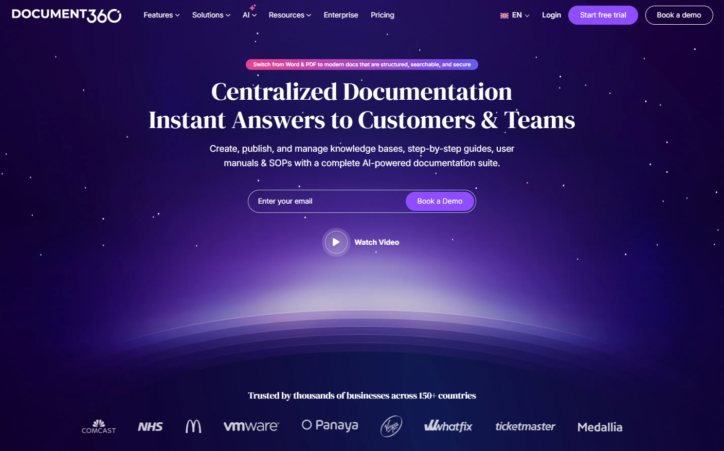The platform includes an AI writing agent, which goes beyond basic content creation by generating full articles from prompts, videos, or transcripts. Its powerful AI Search helps users instantly find the most relevant answers with reliable results.