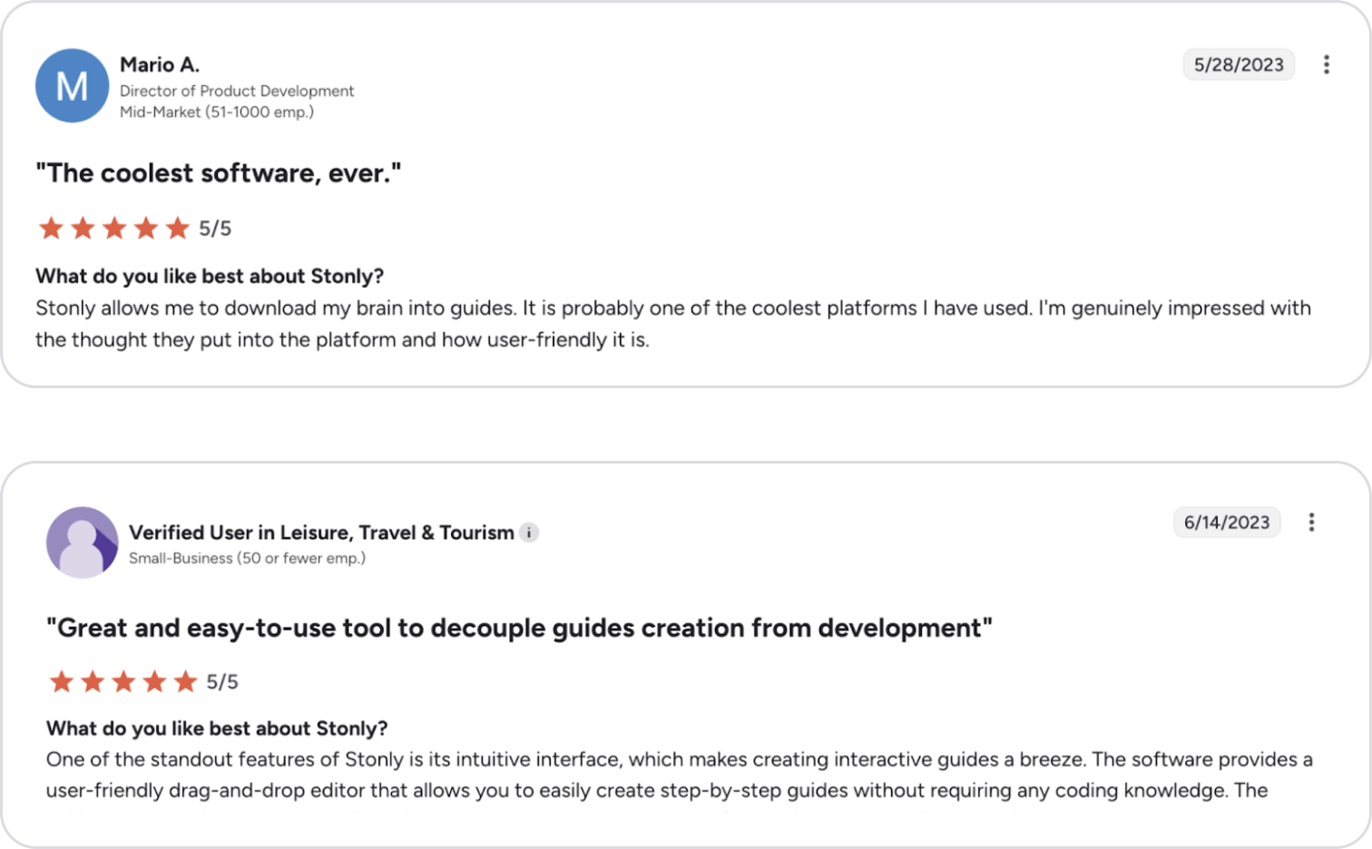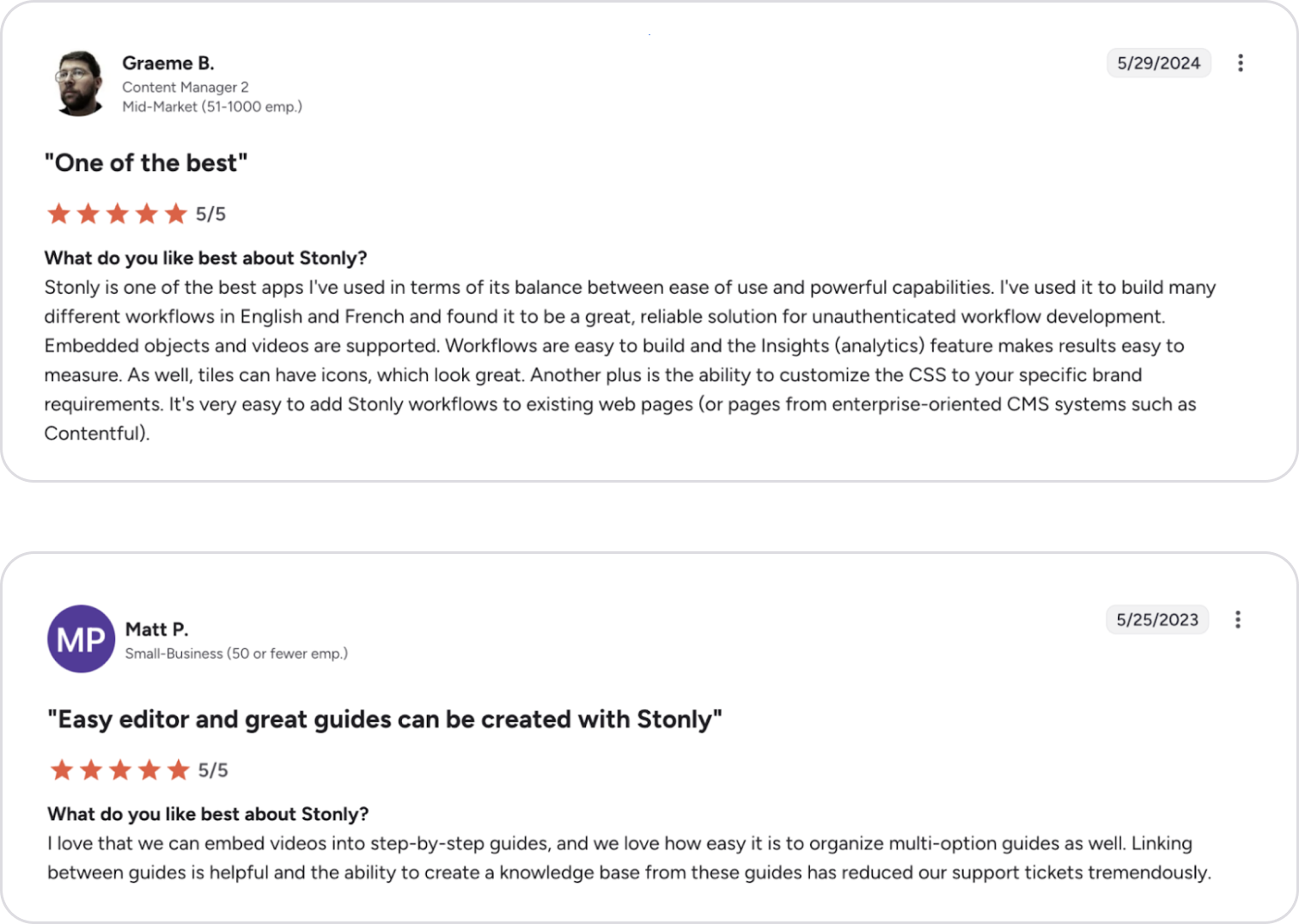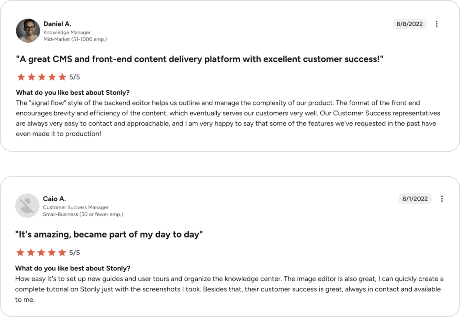 “Stonly’s Customer Success representatives and Support teams are all extremely responsive, approachable, and overall easy to work with.”