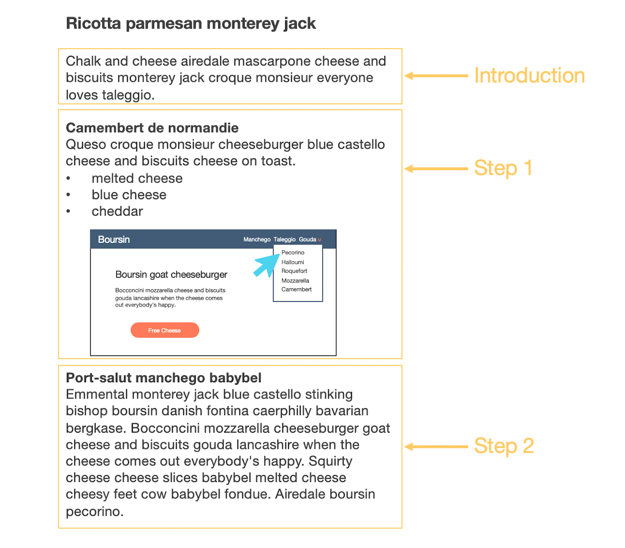 Start by looking at your current article and naming or identifying its sections. Usually, you will see an introduction and maybe an initial step that you want to show everyone. These become your first steps - simply break them down into digestible parts and walk customers through them with “next” prompts using Stonly. Kind of like here, in this Stonly!