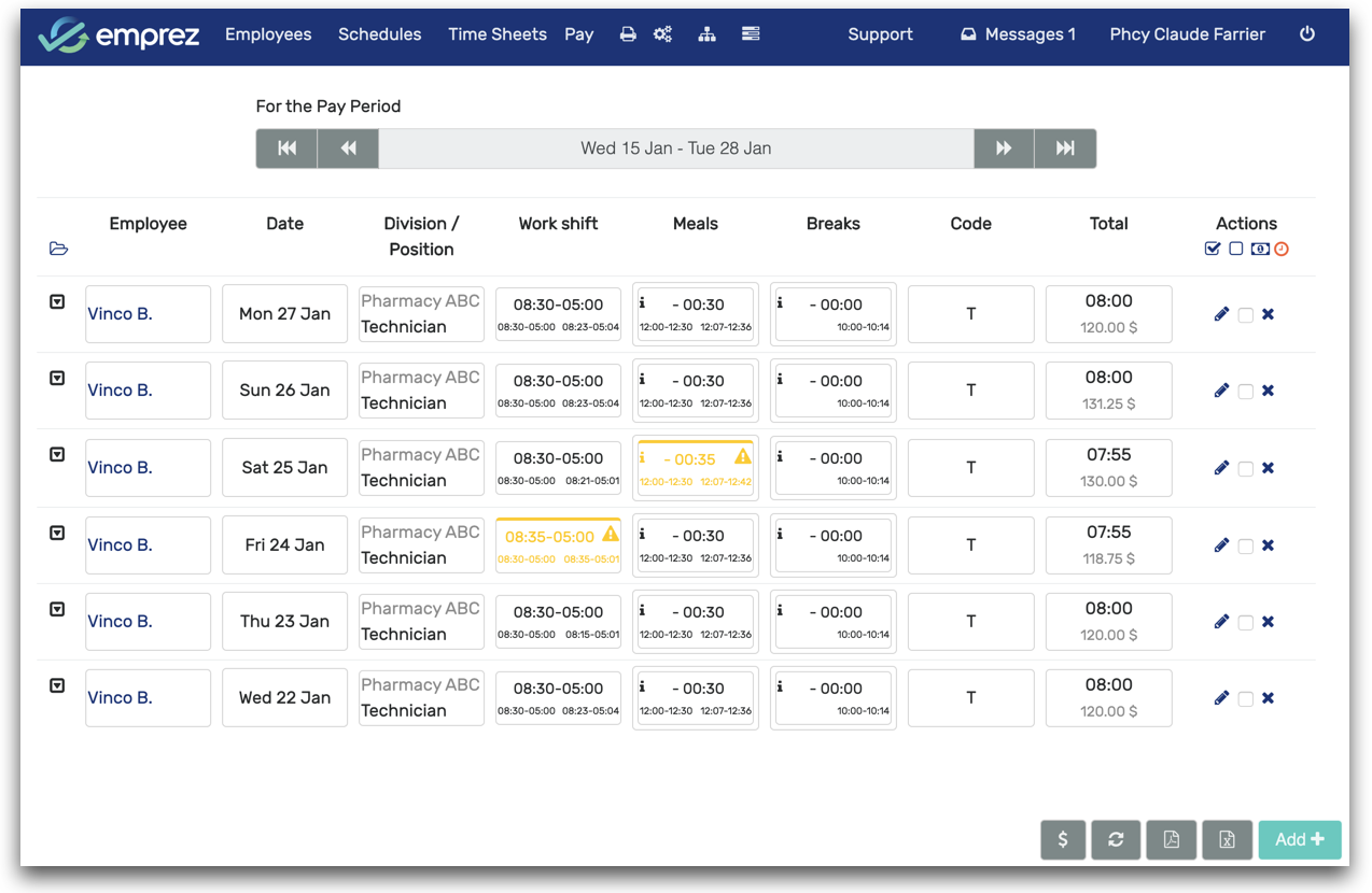 Once the timesheet has been approved, Emprez compiles all the data to be exported to the payroll service.