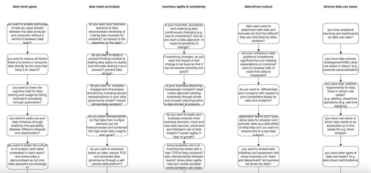 Check the boxes on the right, based on the information you can see in the image and see if Data Mesh could be the right solution for you and your business case.
