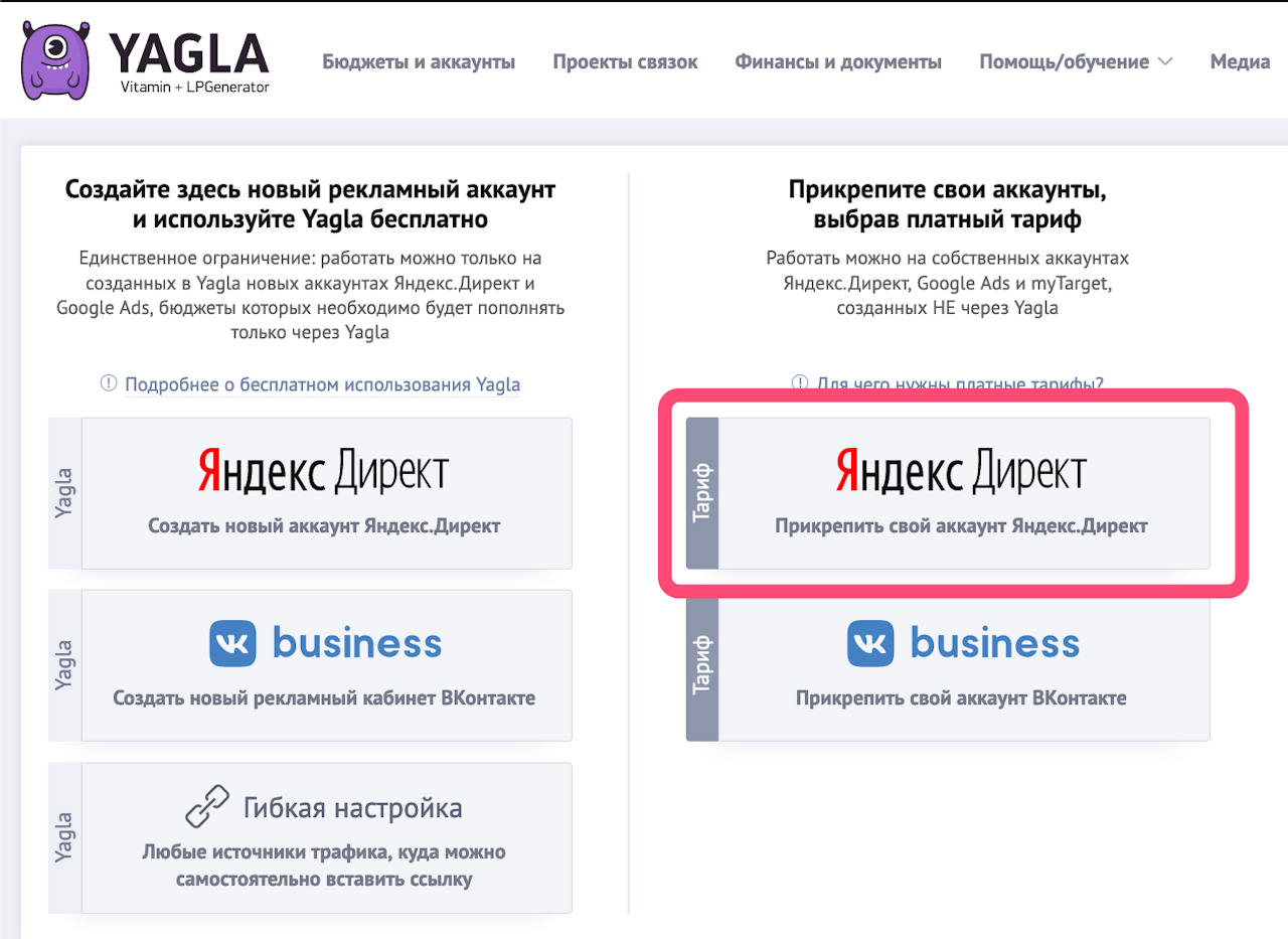 Прикрепите аккаунт Яндекс.Директ, который получили в vitanin tools: