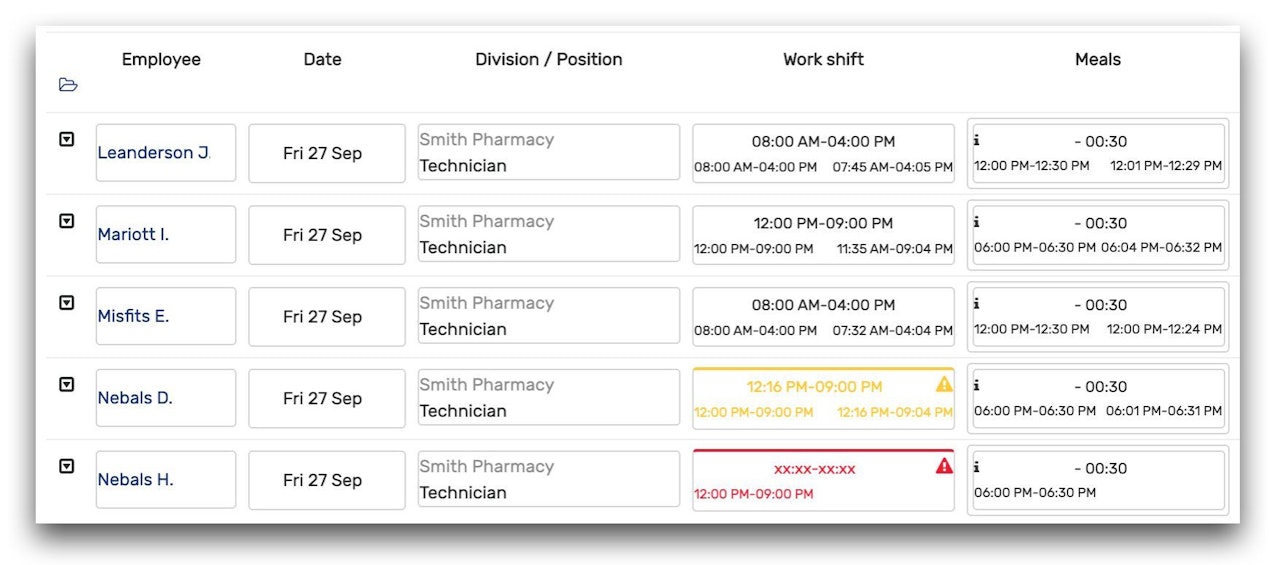 - The actual employee time punches will be compared to the schedule and Emprez will make adjustments (based on your defined adjustment parameters) and calculate the payable hours worked.