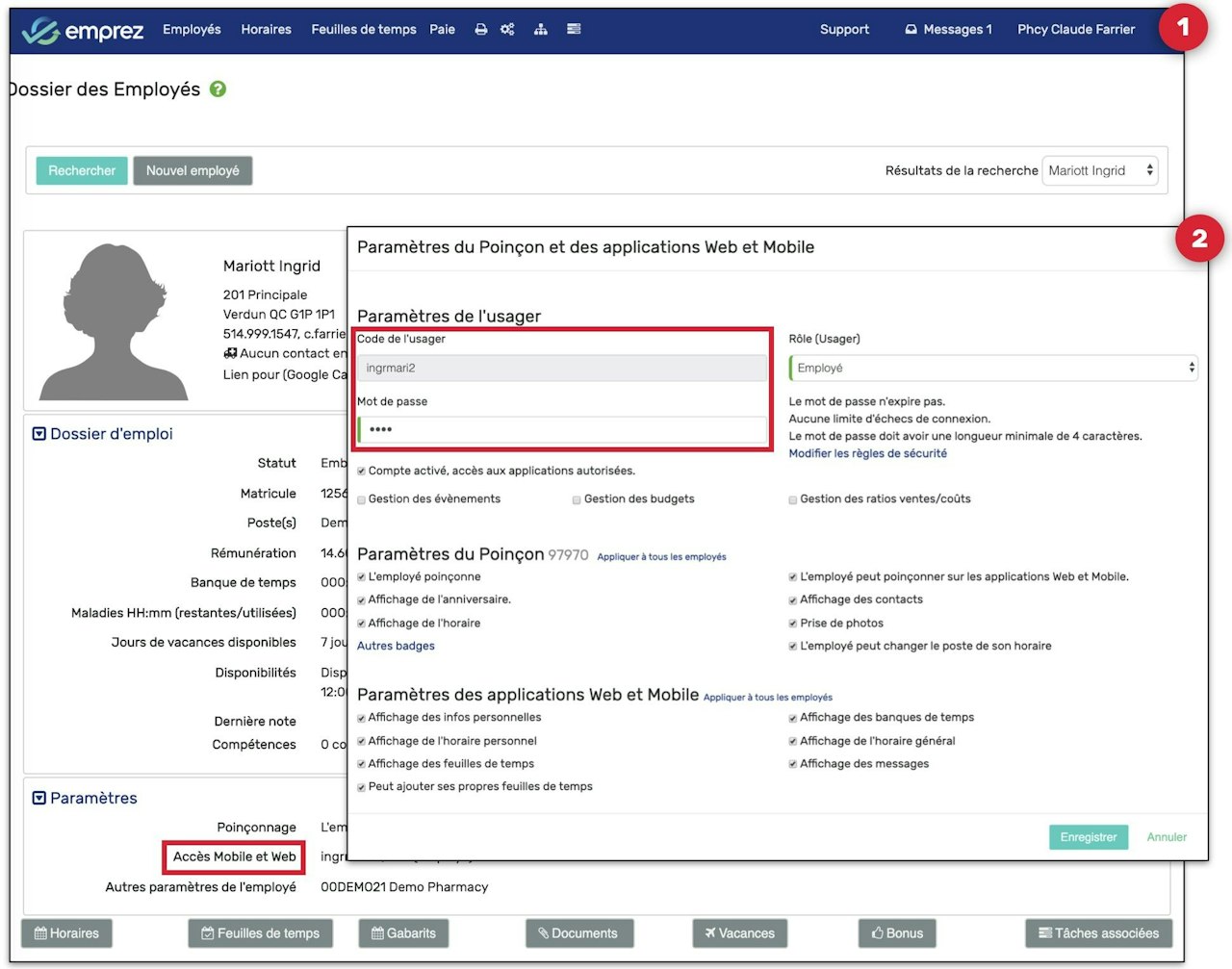 - Vous pouvez modifier le mot de passe de l'employé à partir de cette page au besoin