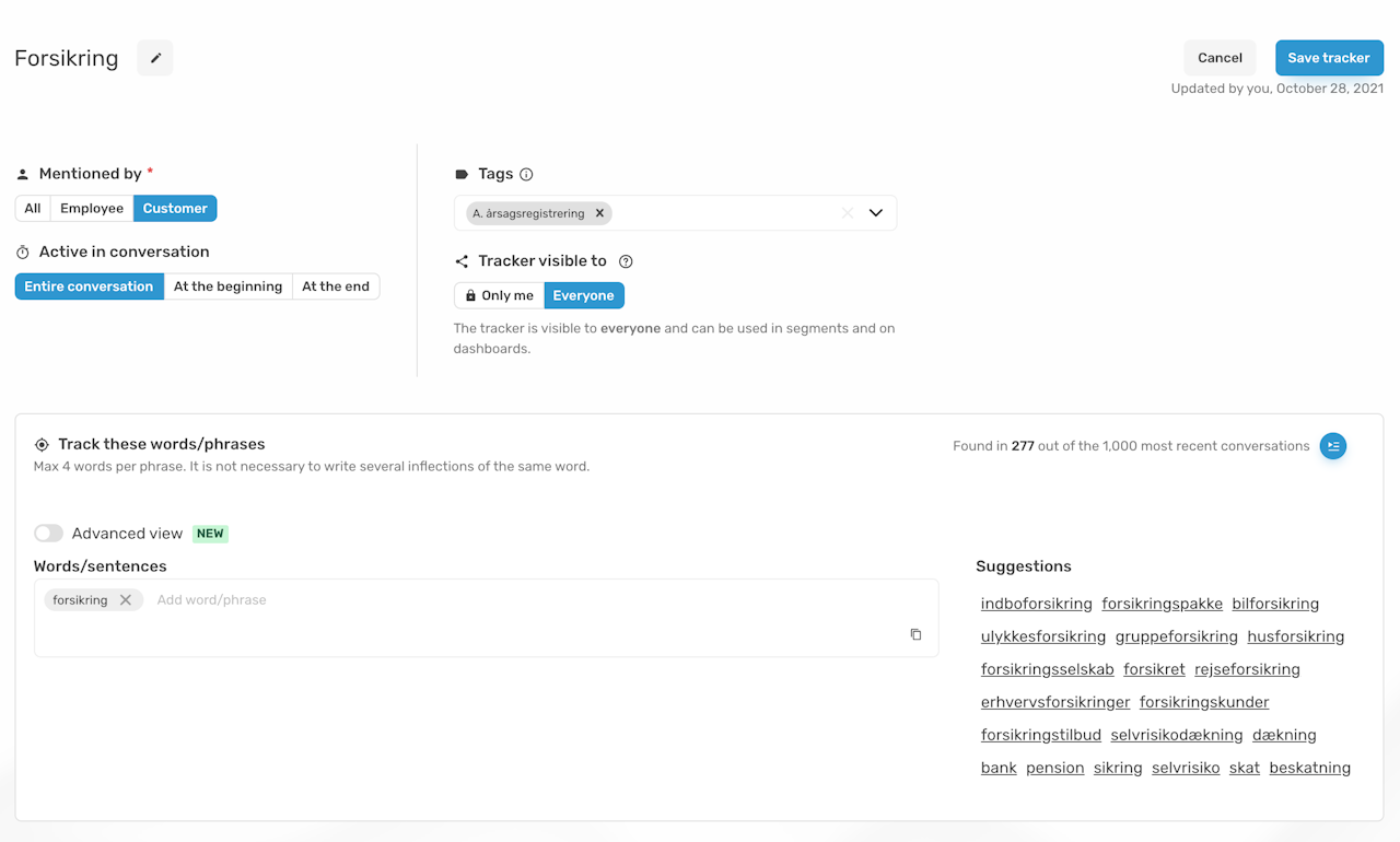 The advanced settings provide you with a range of options to help you optimise the precision of the words and sentences in your tracker: