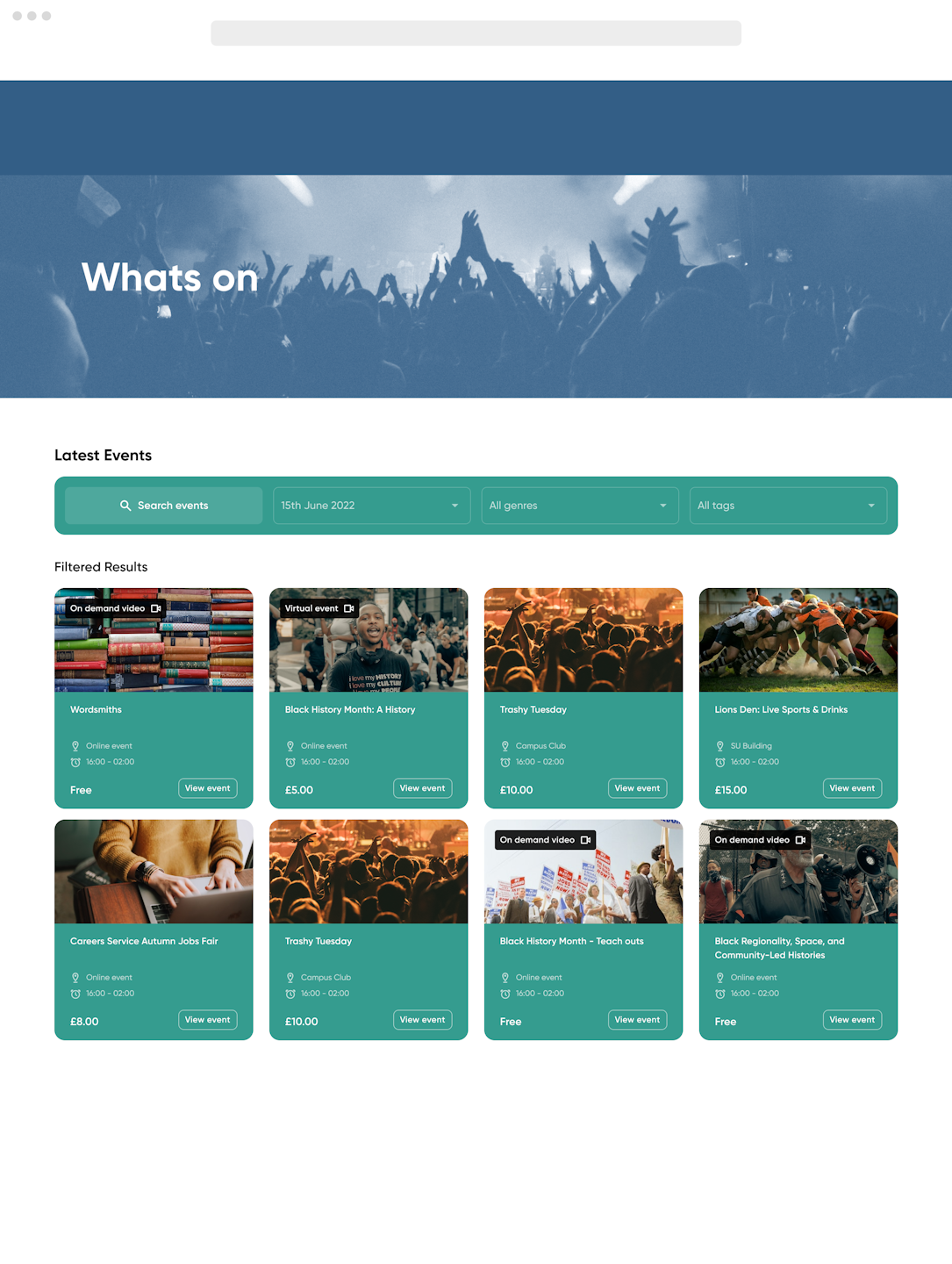 It's completely customisable and is a brilliant way to show off all the amazing events and content that students can take advantage of without having to link them away from your website.