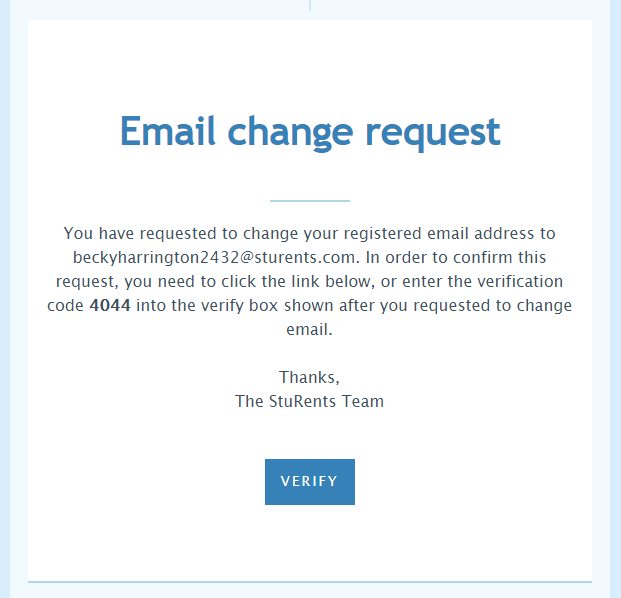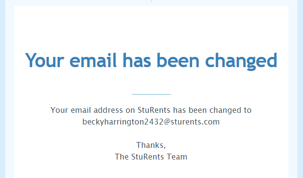 If you're a student user, guarantor user, landlord user, or agent user, you can now change the email address associated with your account. This is the email address that you would use to login to StuRents.com.