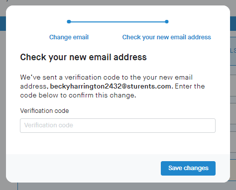5. A code is sent to your new email address that you will need to enter to verify it. Alternatively, you can verify your new email by clicking the link in that email.