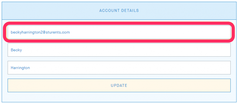 3. Click the email address field in the Account Details section