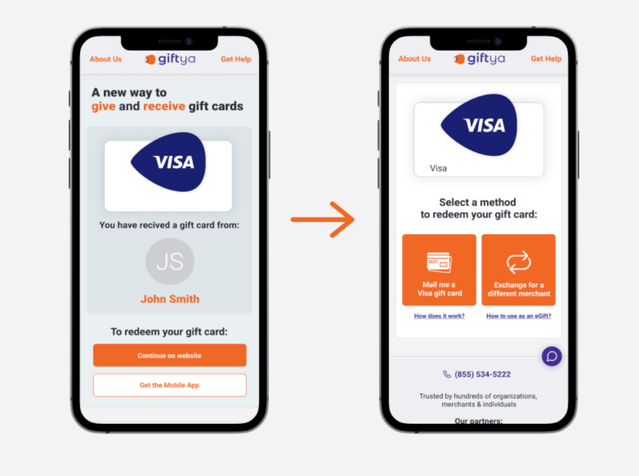 To redeem your Visa GiftYa, simply enter your mailing information to have your plastic prepaid Visa Gift Card mailed directly to you.