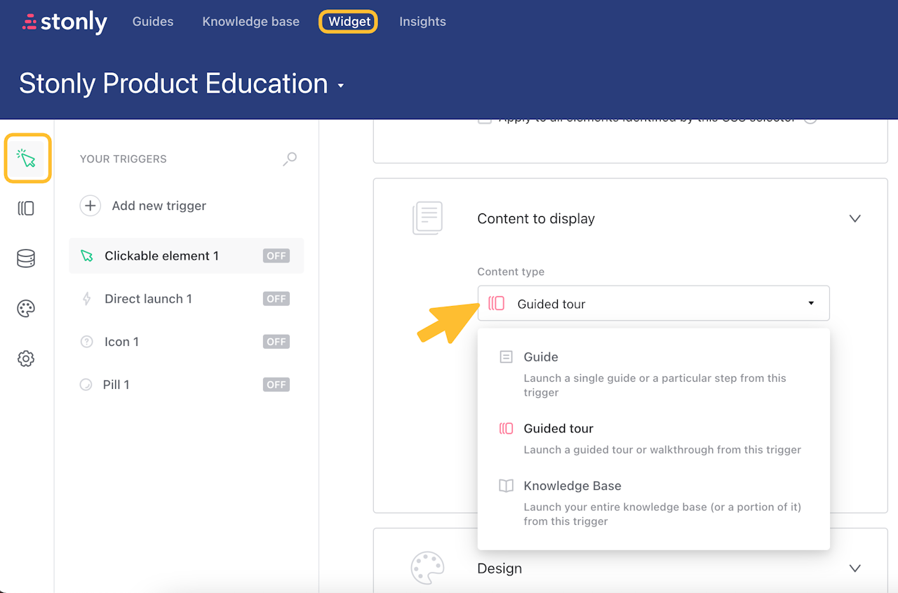 Now that you've published a guided tour, the next step is to create a trigger that will launch it where you want it, on your website or app.