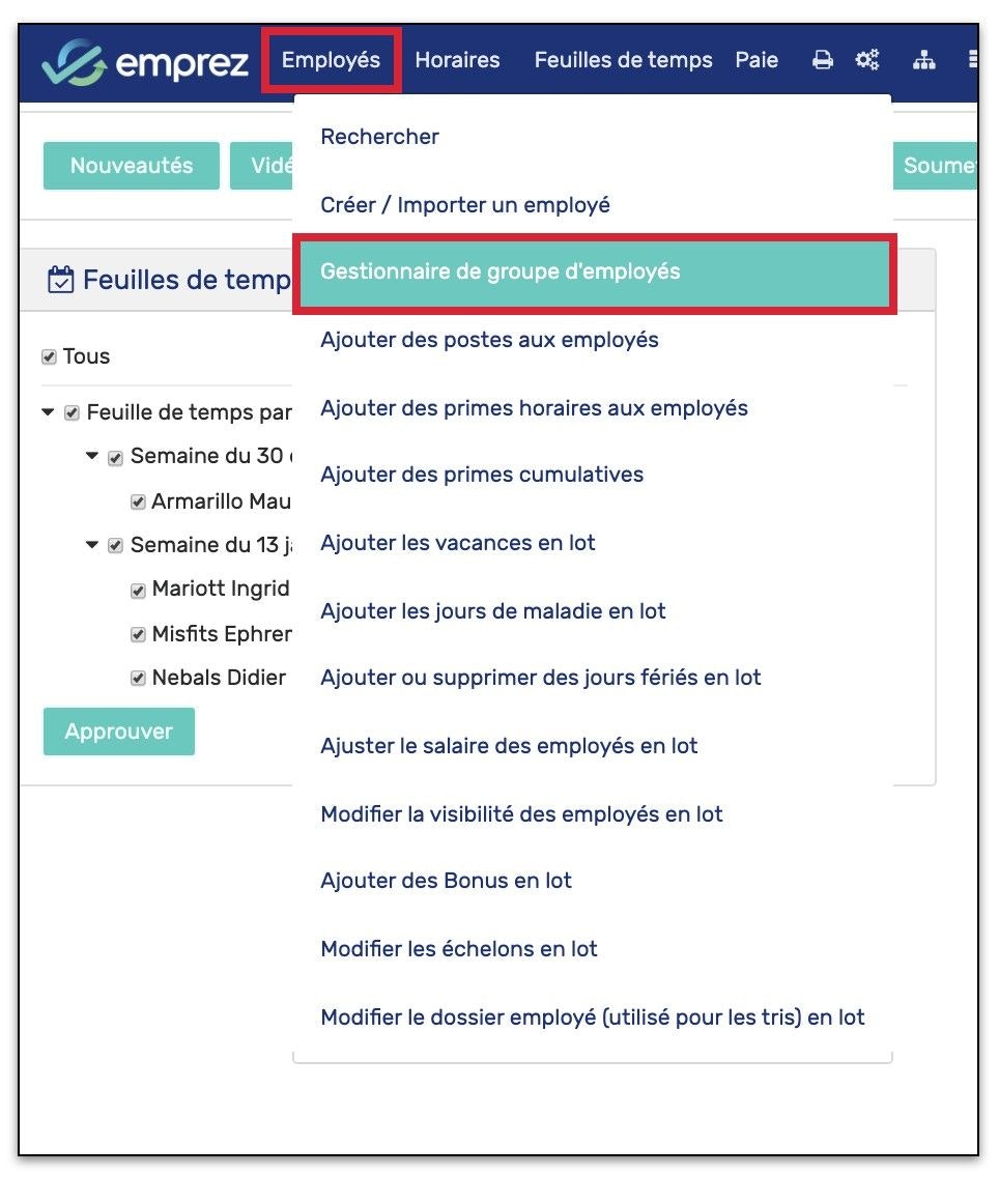 Le Gestionnaire de groupe d'employés dans Emprez vous permet de créer des listes d’employés pour gérer ces types de besoins.