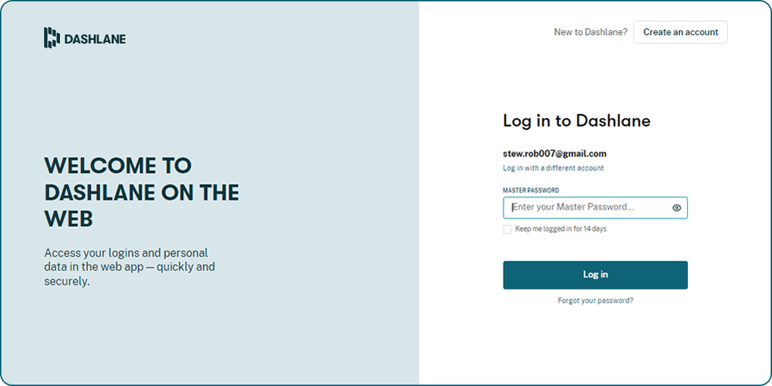To confirm your data is backed up securely on our servers, you first must go to the Dashlane web app in your browser and log in to your account.