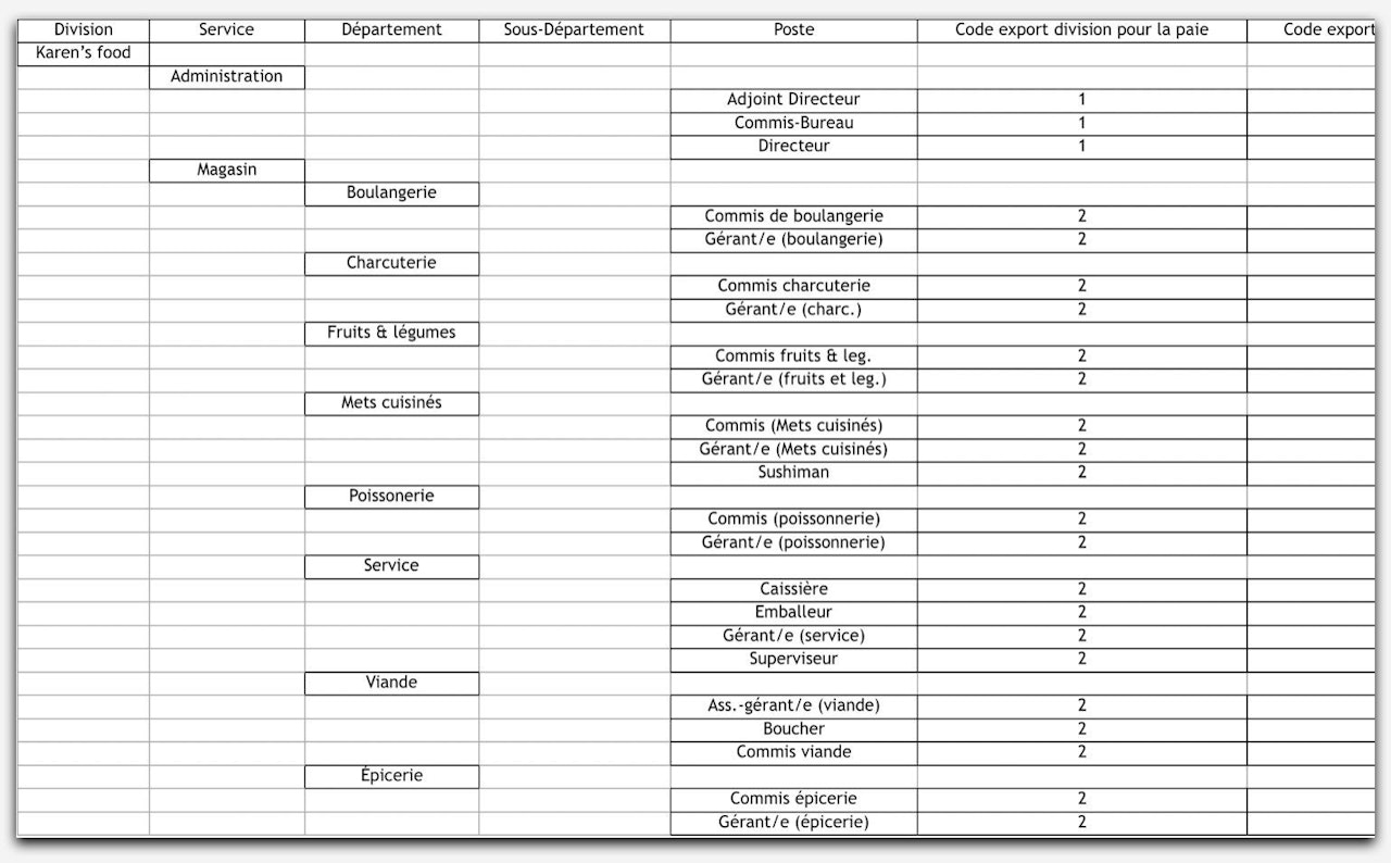 Une "structure" est une carte détaillée de l'organisation des différents postes d'employés au sein de votre entreprise. Il se compose de tous les départements de votre entreprise et des postes d’employés sous-jacents dans chacun de ces départements.