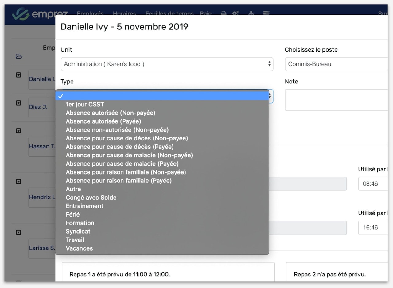Il se peut que vous voulez mettre à l'horaire quand un employé est en congé, ou quand l'employé ne se présente pas à son quart de travail à la dernière minute.
