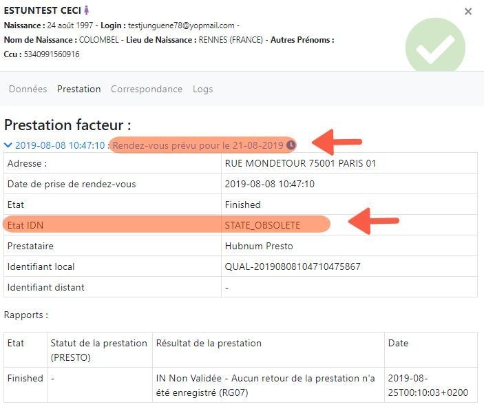 - Le RDV facteur est au statut Spooled (envoyé) ou au statut Obsolete