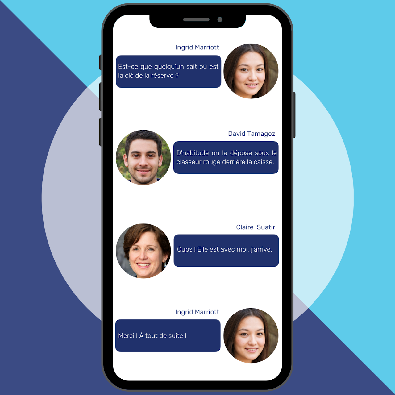 Clavardez en groupe ou en privé avec vos collaborateurs dans un climat professionnel propice à l’échange. Soyez averti par notification dès la création d’une nouvelle discussion et dès la réception d’une réponse.