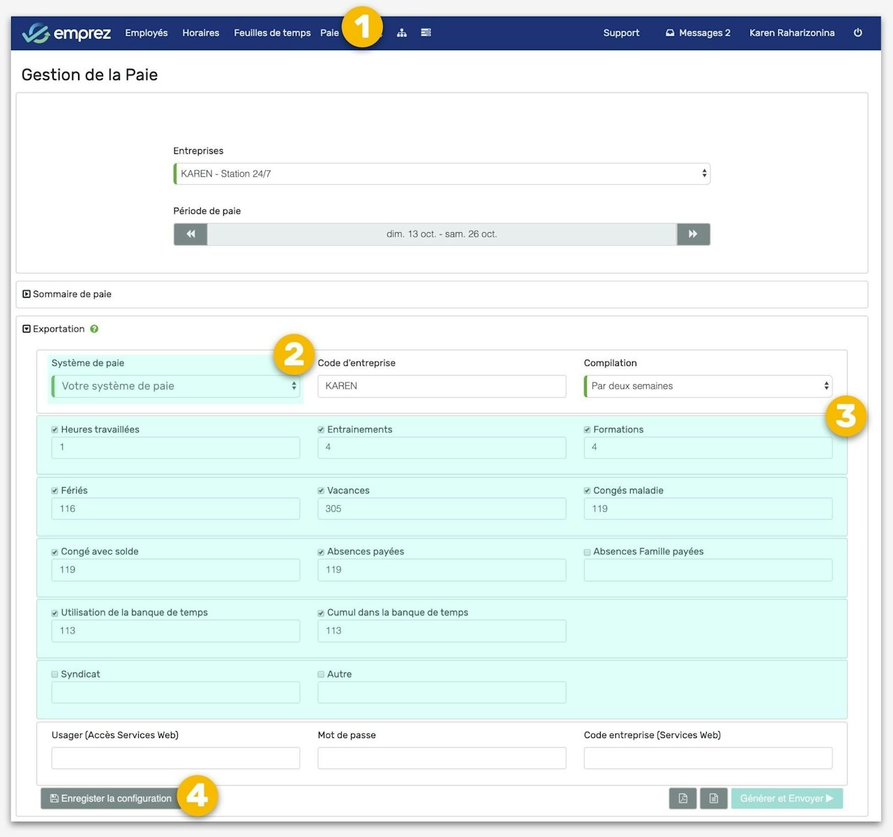 - Allez dans Paie > Exportation