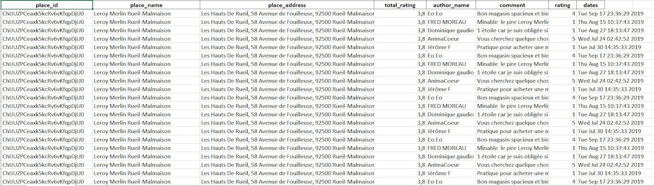Ce script permet la récupération des avis sur google pour un lieu donné et les enregistrer dans un fichier excel.
