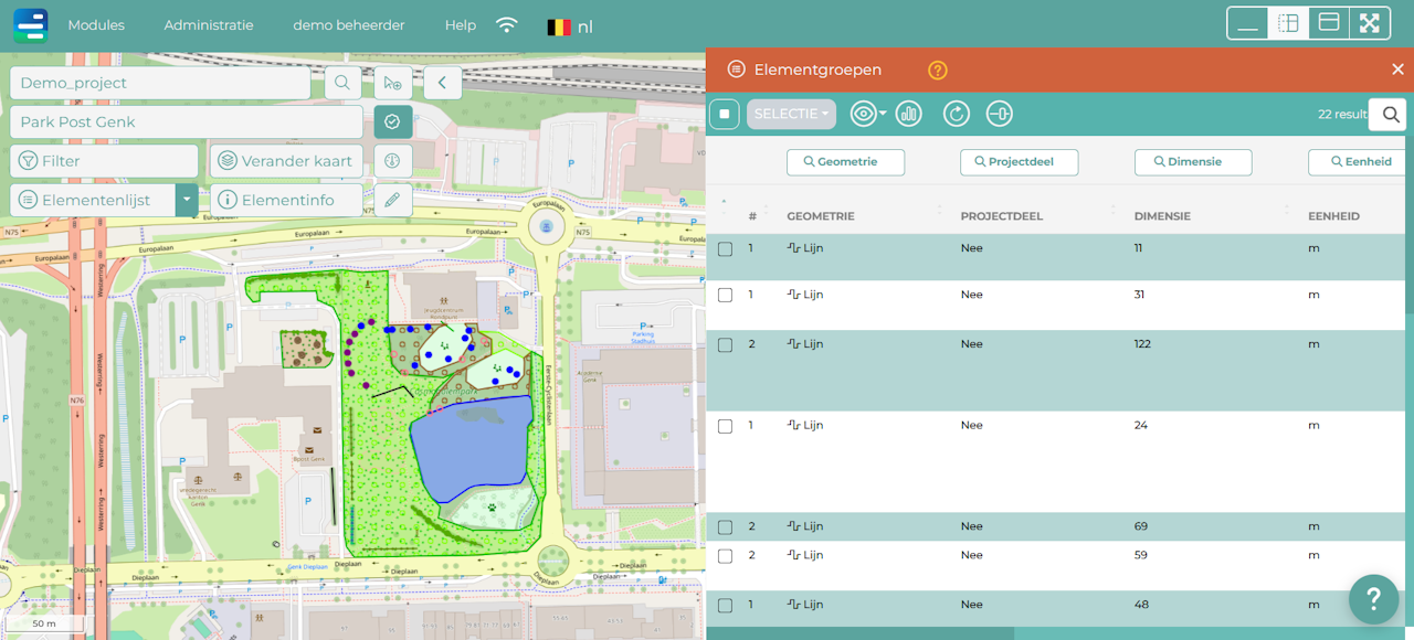 In de beheermodule kan je elementen importeren en/of intekenen in een project en er daar mee verder werken.