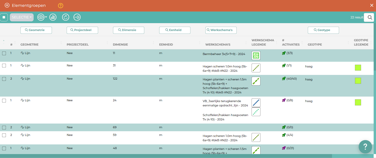 Aan deze elementen kan je een of meerdere beheertrajecten koppelen. Waanneer je een beheertraject koppelt aan een element, kan je op basis van dat traject automatisch terugkerende taken laten uitvloeien. Daarnaast kan je ook eenmalige taken tekenen.