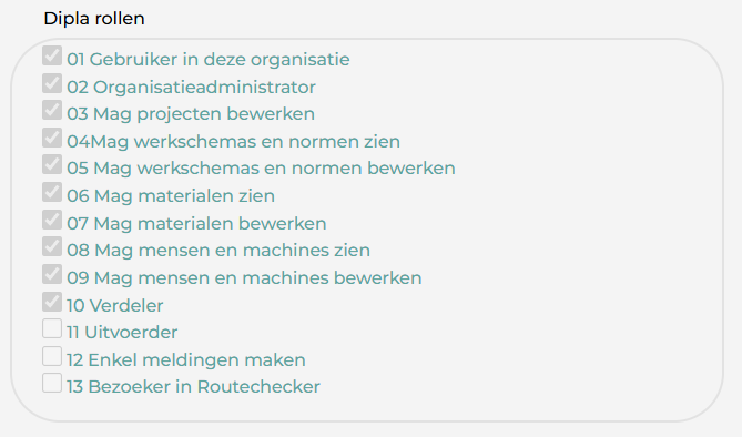 Binnen een organisatie is het aantal gebruikers onbeperkt. Er zijn vier gebruikersrollen beschikbaar, die bepalen welke handelingen uitgevoerd kunnen worden. De interface past zich automatisch aan op basis van de toegewezen rol(len), zodat alleen de relevante functies zichtbaar zijn. Naast deze rollen kunnen per gebruiker extra rechten worden toegekend.
