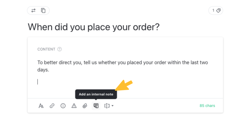 To add an internal note, choose the Add an internal note option in the content editing bar.