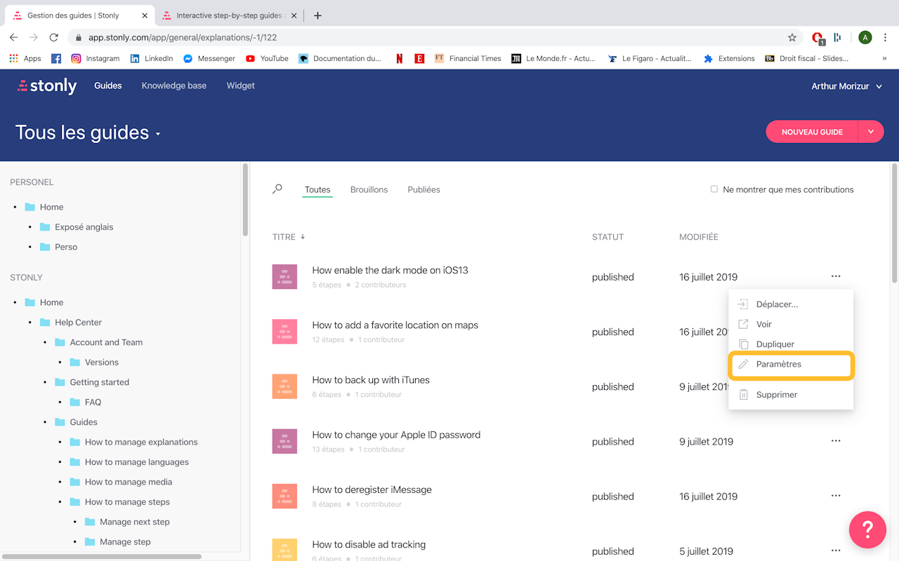 Connectez-vous à Stonly et ouvrez l'onglet Guides .